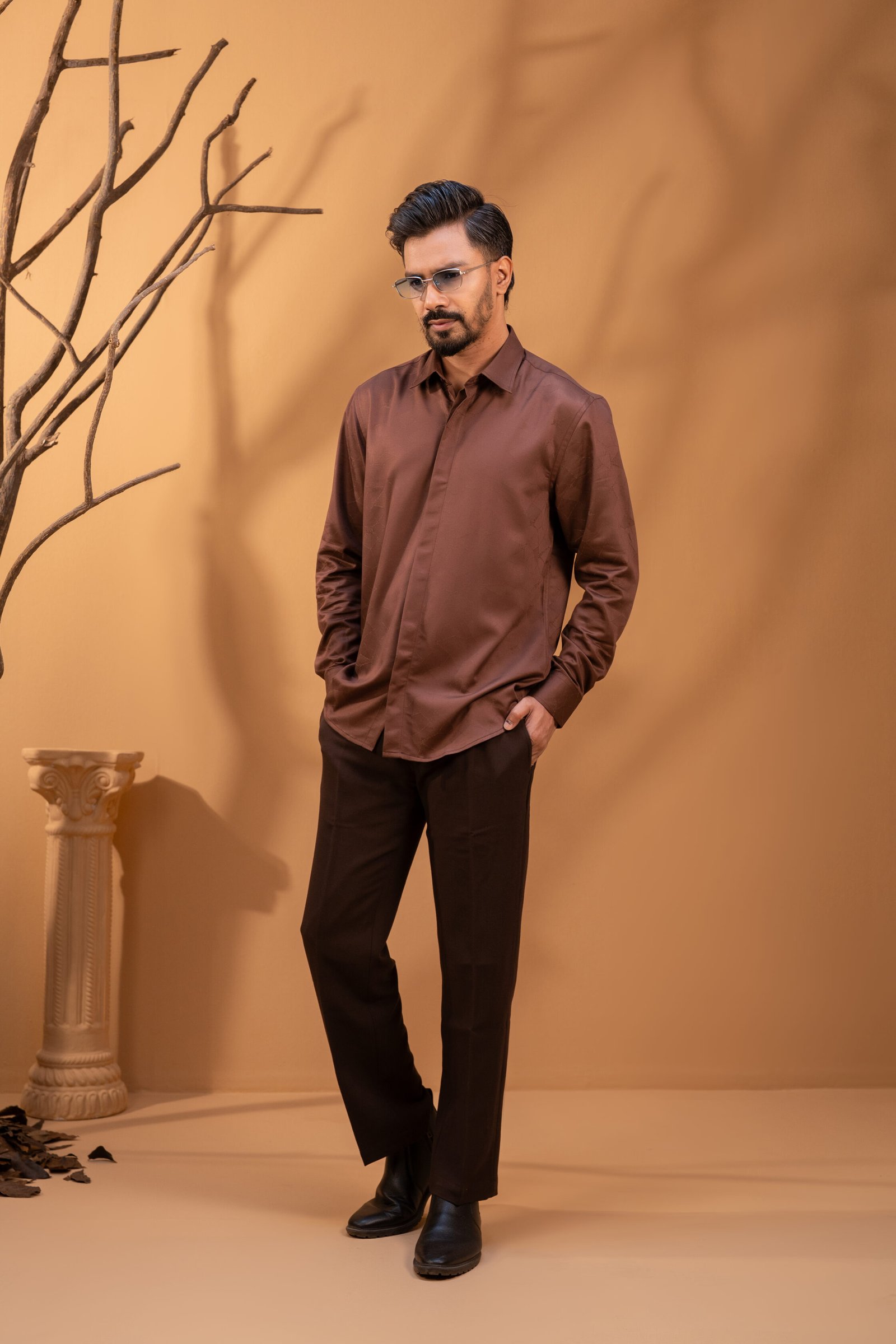 Be the first to review “Brown Print Bamboo Silk Shirt”